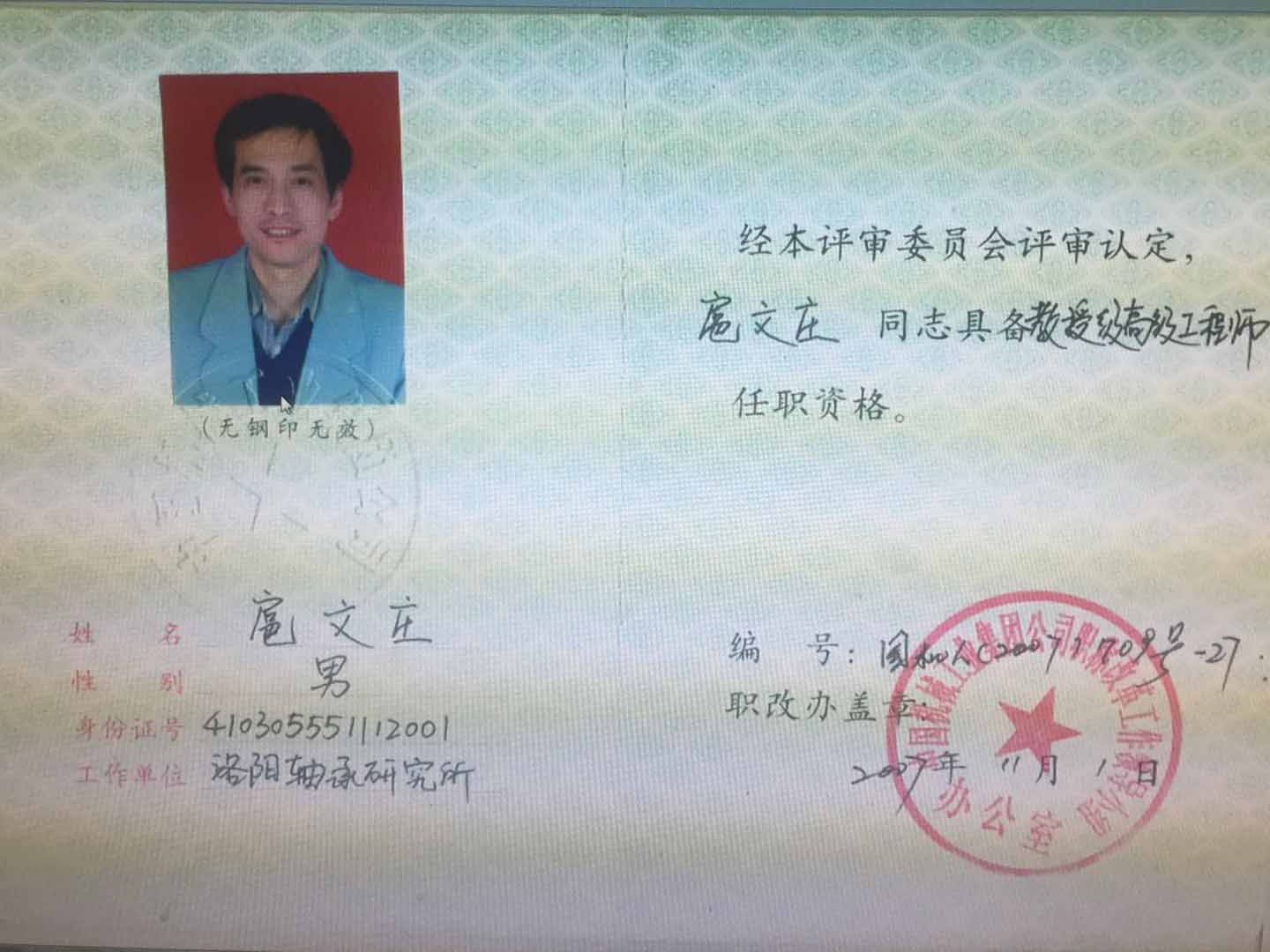 曾受聘为洛轴所工程师、高级工程师、教授级高级工程师。在通用轴承及军品轴承设计及应用、精密轴承及超越离合器产品研发、轴承保持架、金属塑性成型及模具、轴承减振降噪、轴承标准制定和标准化管理、科研立项、科研生产管理、行业服务等领域从事过多项重大课题研究和产品开发工作,有扎实的基础理论和技术水平并取得过一些重要的技术成果和奖励。